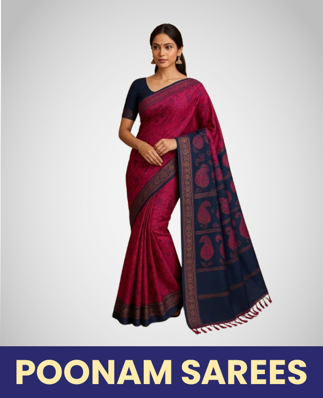Each saree in our collection is carefully sourced directly from skilled weavers and manufacturers across